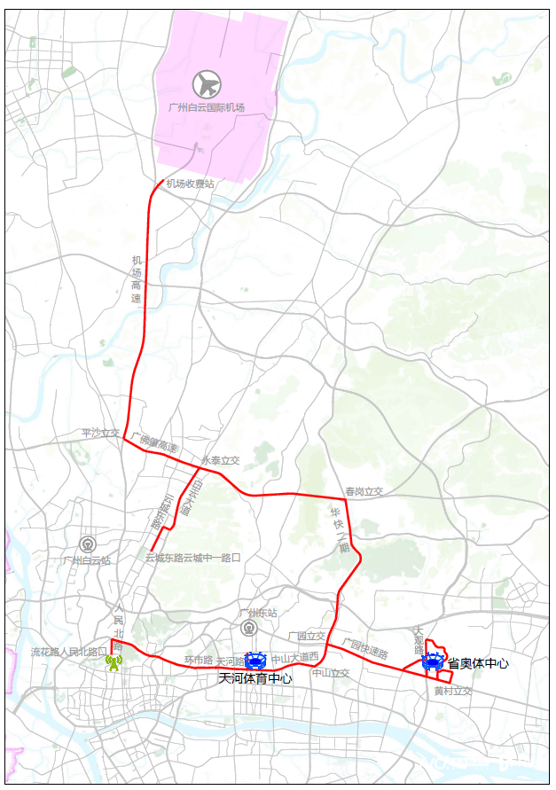 连接广州白云国际机场与驻地酒店的专用车道启用时间为2025年11月6日至11月20日、12月5日至12月14日,每日7时30分至19时30分。